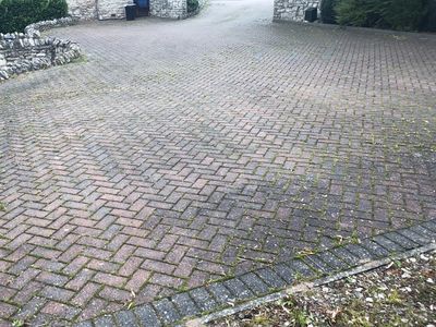 A typical driveway cleaning job gets a full application of cleaning product, full jet washing and the finishing touch is an application of a control product which combats re-colonisation and prolongs the clean finish.